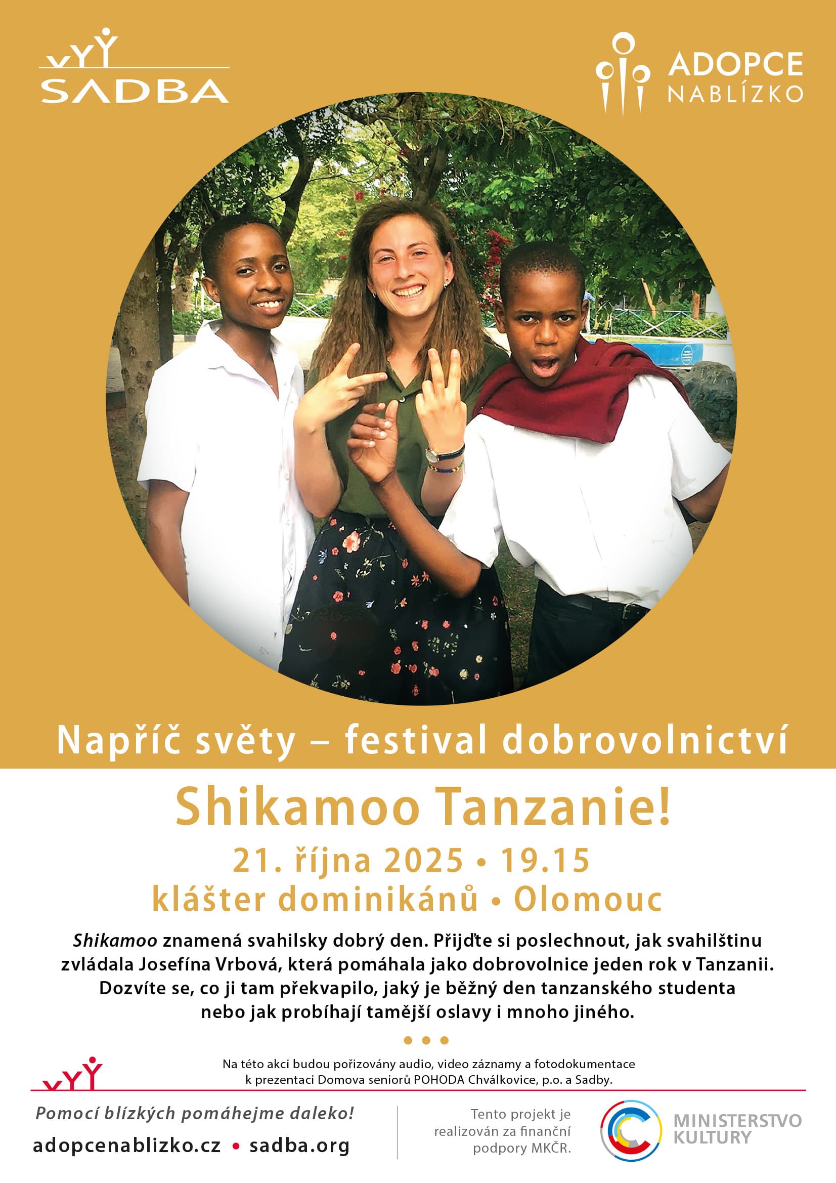 Povídání a beseda se studentkou Josefínou Vrbovou, která strávila rok jako dobrovolnice na misiích v Tanzanii v rámci programu Adopce na blízko Salesiánské asociace Dona Boska (Sadby). V úterý 21. října 2025 v 19:15 hod. v sále kláštera.