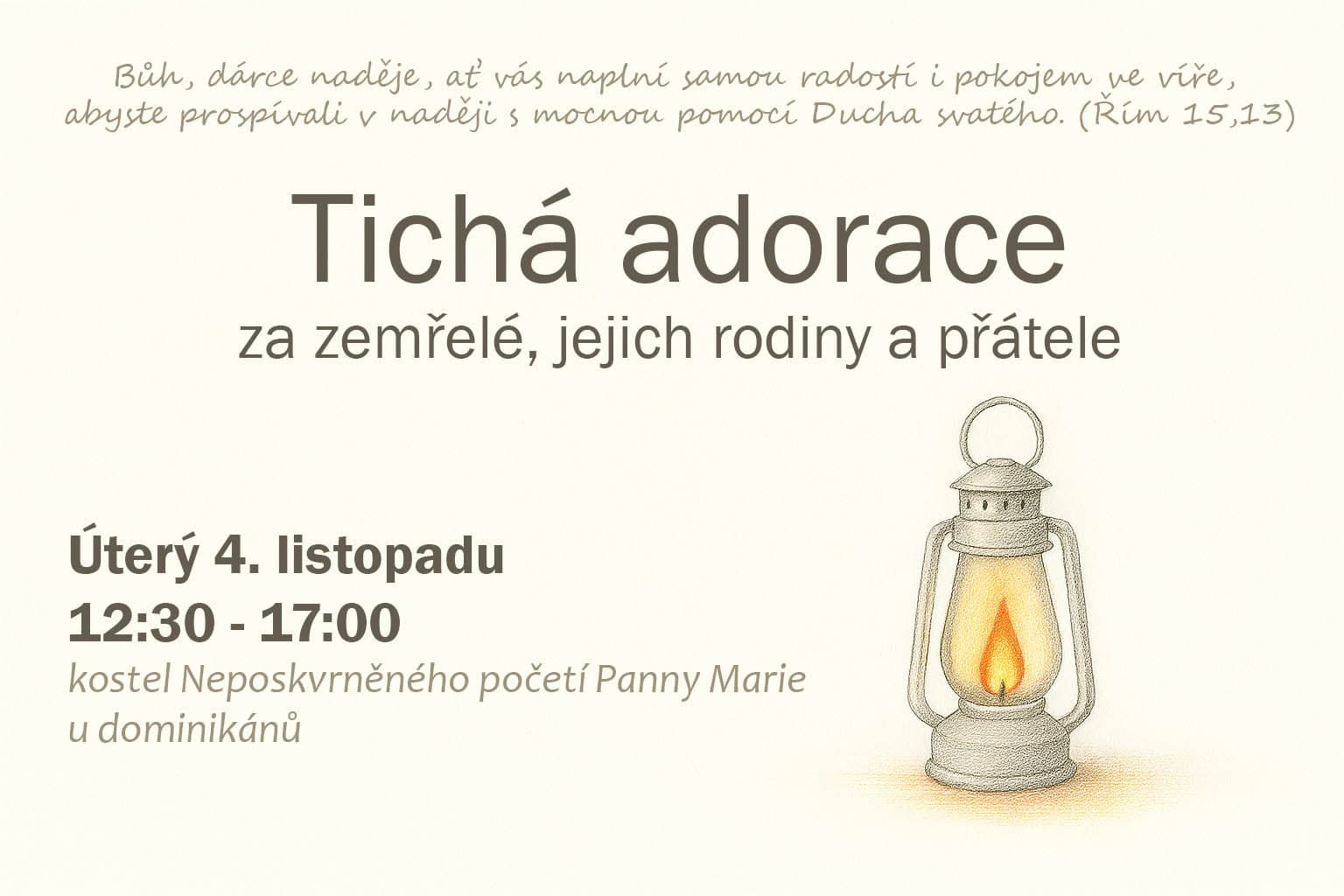 V úterý 4. listopadu od 12:30 do 17 hod. v našem kostele.
